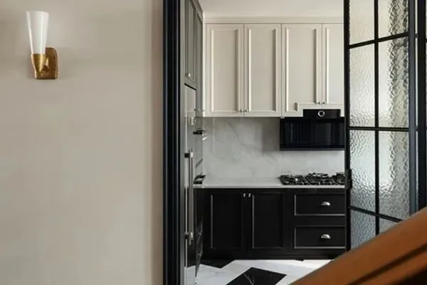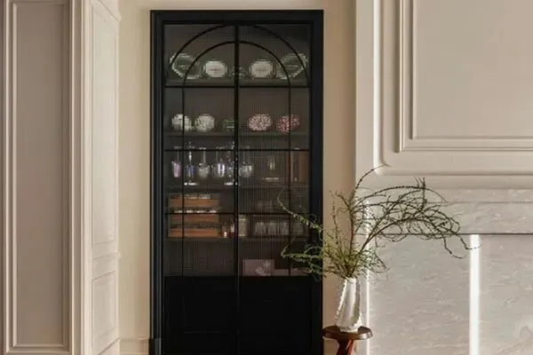 在客厅里继续探寻着,瞬时间,一个精致的橱柜,引起了我们的关注。设计师Eric告诉我们,这个橱柜是用来陈列Rose所收藏的瓷器的,这是她的爱好之一。在黑色的经典拱门设计之中,以毛花玻璃和黑色的框架作为结构,让这个橱柜绕具了精巧秀雅之韵味了。弗洛伊德说:“我随时要拥有我的收藏品,它让我感到一种纪律感,掌控感和秩序感。”也许,在这个世界上,没有比收藏更让人们满意的事情了。这个巧妙的橱柜,在一盆绿植的点缀之下,彰显出了法式的温雅格调了,让人倍感它的瑞丽与大方质感,同时,它也是Rose不凡品味的韵脚了,在家里,俨然是点睛一笔,一笔生花,也悄然宣告了这个家的非凡之处。