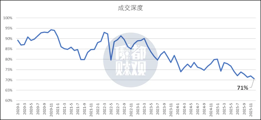 更关键的信号是成交深度(成交价/挂牌价)持续走低,趋势上没有扭转。