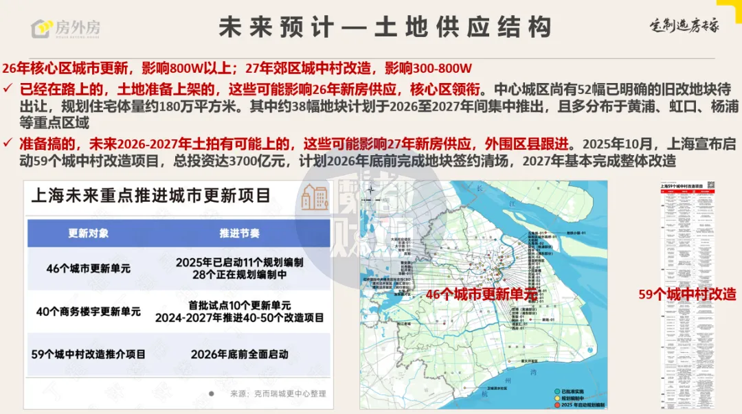 根据规划,中心城区尚有52幅明确的旧改地块待出让,规划住宅体量约180万平方米,其中38幅计划在2026-2027年集中推出,主要分布在黄浦、虹口、杨浦等核心区域。