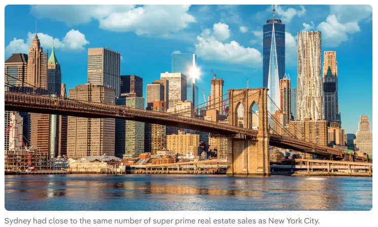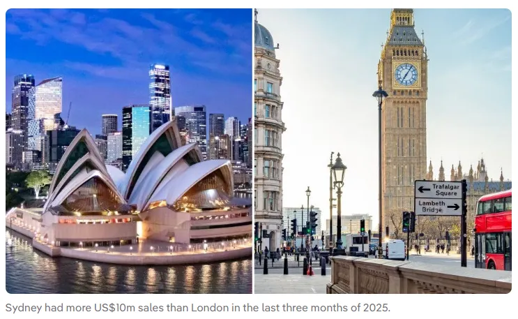 莱坊《全球超级高端住宅情报报告》显示,2025 年第四季度悉尼超千万美元豪宅成交总额达 13 亿澳元,全年超高端住宅易手金额更是接近 33 亿澳元。悉尼 Rose Bay 的一栋住宅以 8250 万澳元创下 2025 年成交价新高,Barangaroo 的高端公寓也拍出 8000 万澳元的高价。悉尼东区、下北岸的 Mosman 等核心区域,高端住宅供应不足而需求强劲,成交价纪录被多次刷新。正是这样的供需基本面,让悉尼在全球超高端住宅交易中排名第五,力压伦敦、巴黎,直追纽约。图片来源于:realestate