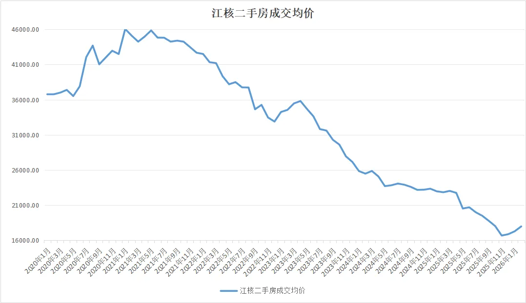 不过可喜的是,进入2月份以来,整个江核二手房的成交价出现了明显的上升,成交均价已经几乎接近去年10月份的价格,算是爬出了深坑。