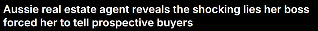 澳洲一名前房地产中介曝光了她刚入行时,被迫向潜在买家说出的惊人谎言。