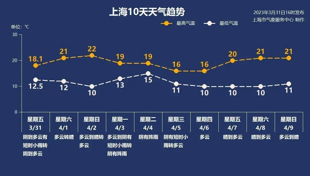 4月3日~5日上海再度转为阴雨天气,特别是4月4日这一天,风大雨大,体感湿冷,出行方面一定要注意安全。6日开始将多晴暖天气,最高气温可接近或超过20℃。