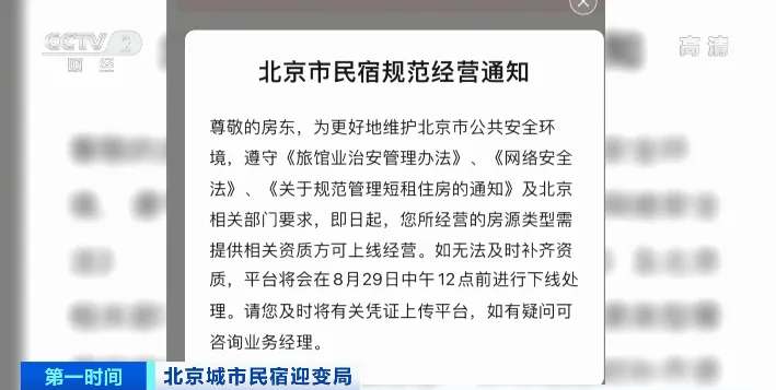 据悉,北京出台了一份关于规范管理短租住房的通知。根据这份《通知》,利用居民住宅小区的房源开民宿需要符合相关条件。记者调查发现,国内主要民宿平台从8月下旬开始正式执行政策,下架相关房源。记者检索发现,目前北京市区开在住宅小区里的城市民宿,基本都已下架。几个月前,因为看好民宿市场的发展,刘先生特意花高价在北京环球影城附近的小区陆续租下十多套房源。其中,不少房源可以从客厅直接眺望到环球影城。然而8月底,刘先生接到民宿平台的通知,因为他的房源不符合相关要求,因此,这几套刚装修完的民宿被下架了。据刘先生介绍,该小区有3000套房源左右,“我能接触到的大概有50到80个民宿经营者,房源至少是300套。”根据《通知》,小区里开民宿需要符合五项条件。其中第一项就是,开民宿需要符合小区管理规约;如果小区无管理规约的,就必须取得业主委员会、物业管理委员会书面同意或取得本栋楼内其他业主的书面同意。简单来说,就是开民宿要征得全体业主同意。多位民宿经营者们告诉记者:目前,不少小区都没管理规约,即便有管理规约,也不太可能涉及民宿经营的问题。因此,他们只能去找业主委员会或物业管理委员会。