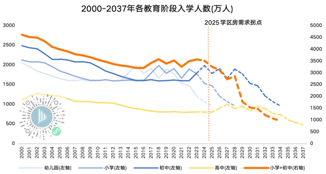 随着新增人口减少,我们在2023年底已预测中小学入学人数将从2025年起明显走弱,而事实已证明过去由教育资源驱动的改善型居住需求增长动能将逐渐弱化。