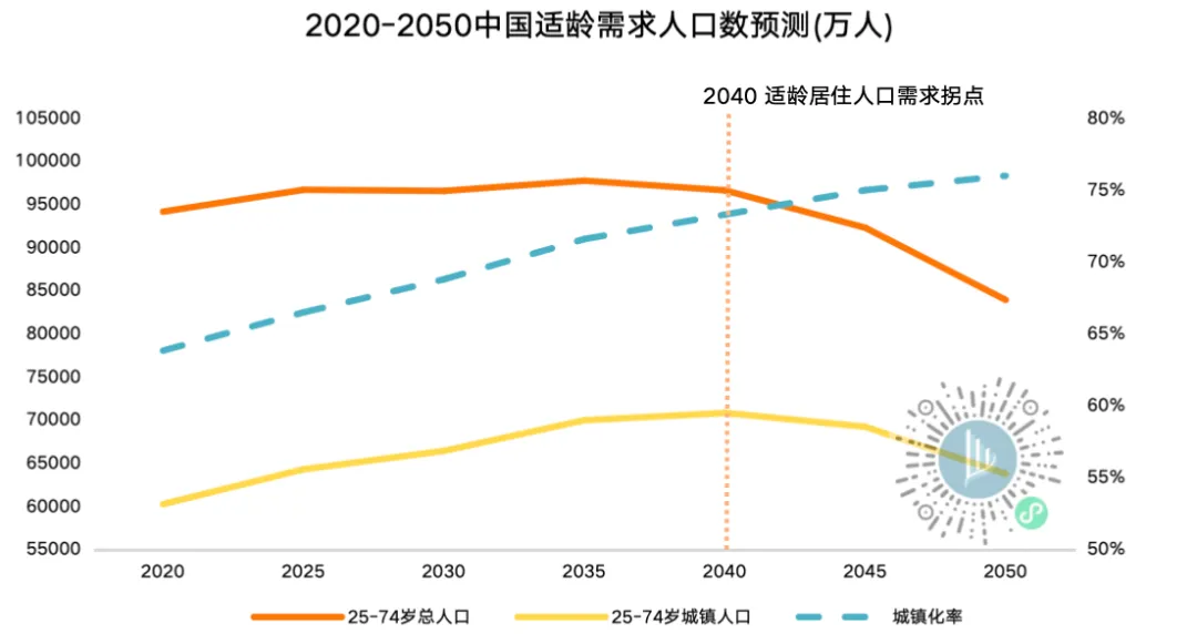 届时死亡人数上升与出生人数减少叠加,使得中国整体适龄人口住房需求从2040年左右开始持续下降。