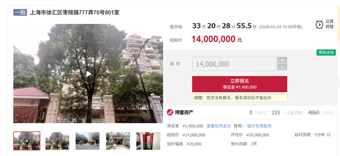 另一套在鑫国家园,一拍1400万起。位置很硬,正经徐家汇,上影厂地皮,出门就是天钥桥路。
