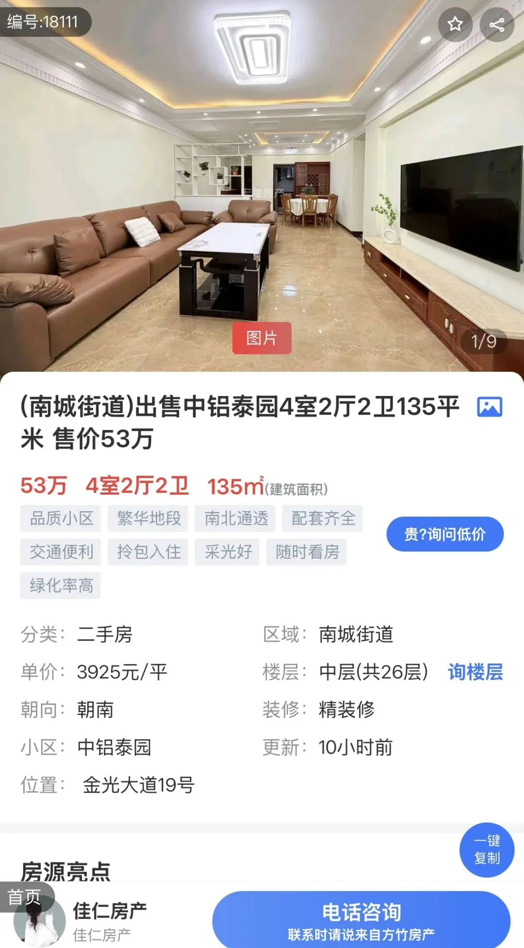 【方竹房产】泰园四室两厅,拎包入住53万元!