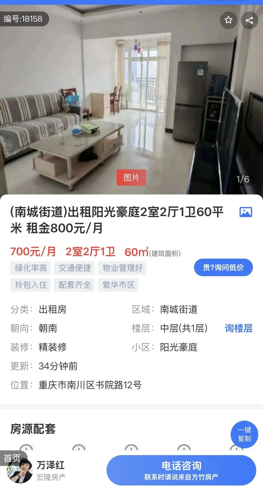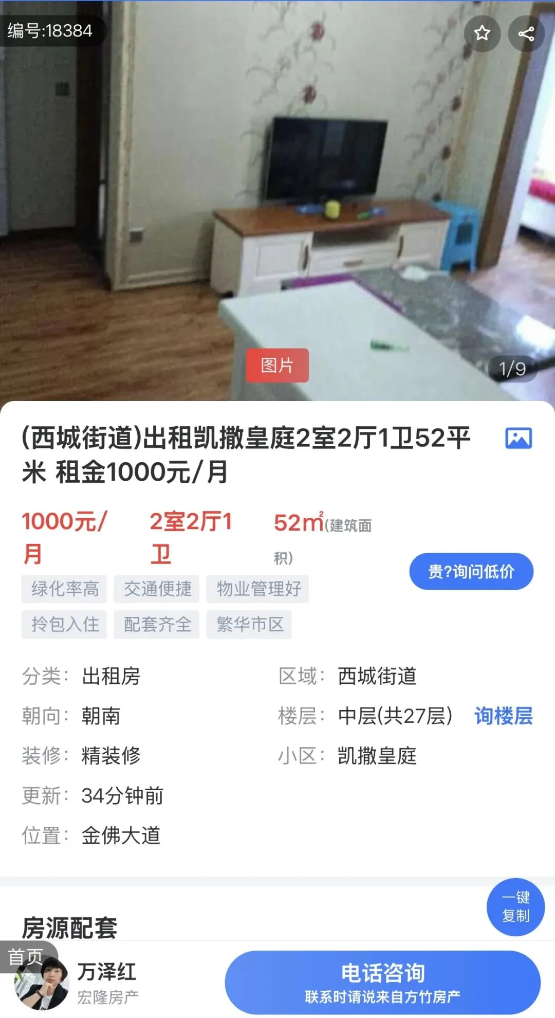 同城房产网|半岛豪庭3室1厅1卫出租,950元/月,免中介费,随时看房……