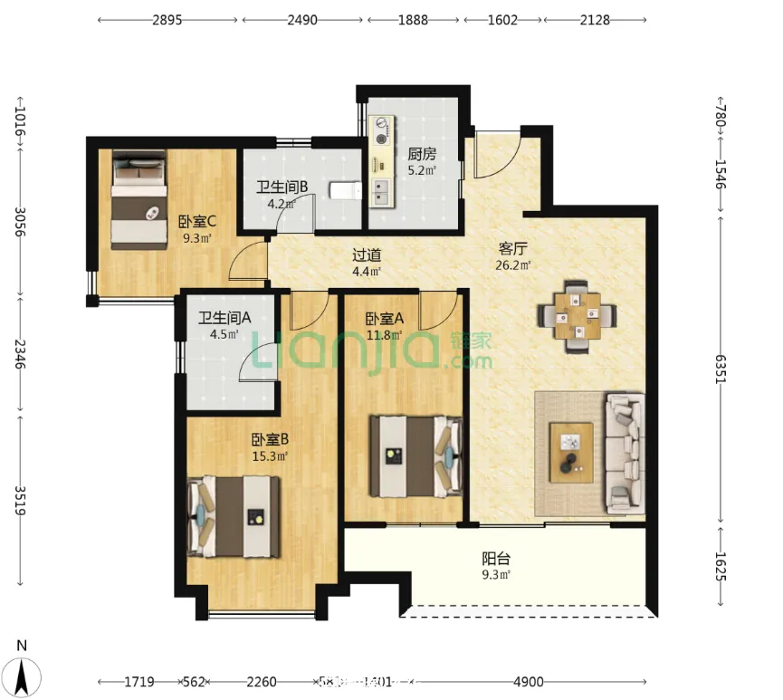 2026年02月01日,【那坊归心】成都锦江琉璃场存量房(二手房)华润锦江悦府建面122平套三报价372万,是否适合90后?