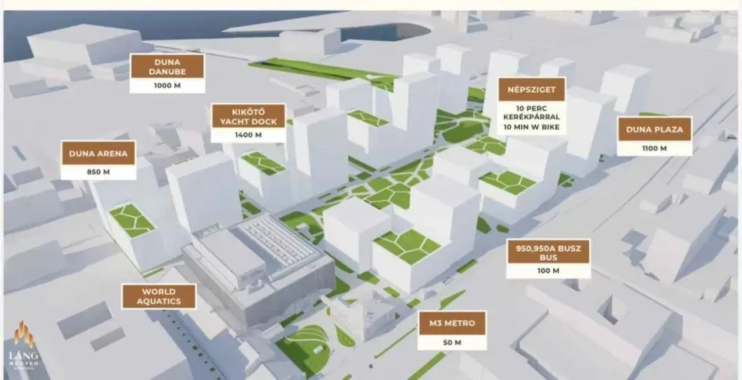 Láng 社区位于布达佩斯第13区(XIII区)正在更新改造的城市片区,原址为 Láng 机械厂旧址。该开发项目旨在打造一个宜居、可持续、现代化的城市社区,使住宅功能、社区生活与绿色空间融为一体。