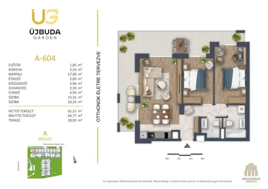 📍 项目位置:Budapest XI 区 · Hauszmann Alajos utca🏢 开发商:Biggeorge Property📐 净面积:62.51㎡📐 露台面积:29.92㎡📐 建筑面积:64.77㎡