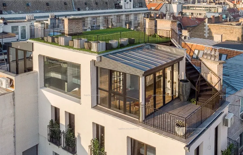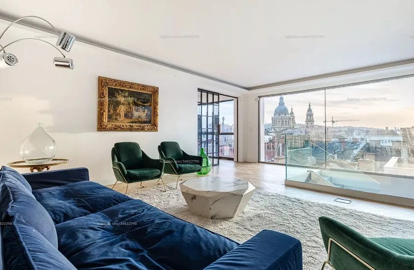 在布达佩斯市中心,距离圣伊什特万大教堂仅几步之遥,我们为您呈献这套独一无二的复式公寓。其最大亮点在于拥有私人屋顶露台,从这里可以饱览几乎整个城市的壮丽全景。