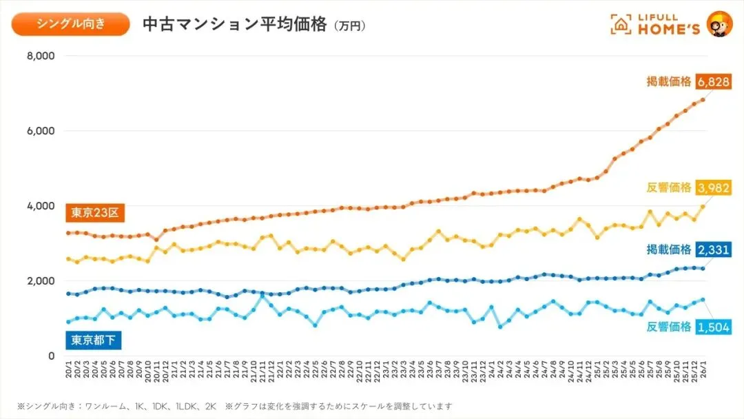 东京23区家庭型二手公寓挂牌均价首次突破1亿日元。