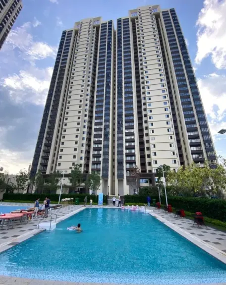 从首期交付的实景图来看,整体环境还是很不错的,人车分流,还配备有游泳池。公开资料显示,在2022年前后,该小区的均价在5000元/每平米左右。