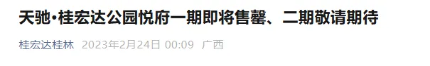 2023年2月份时候,该楼盘公众号还发布消息告知一期即将售罄,二期正在施工建设中。