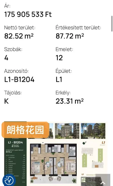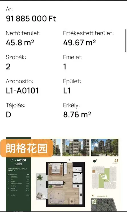 亮点特色1. 项目定位:布达佩斯十三区Váci út沿线的现代化多功能新城区,集居住、商业、办公、休闲于一体。2. 住宅特色:◦ 智能家居、节能暖通系统、每户专属露台/阳台◦ 配套储物间、地下停车位3. 核心配套:◦ 近2公顷中央公园:跑道、步道、户外健身、儿童游乐区、社区空间◦ 世界水上运动联合会国际中心:训练、住宿、康复及总部功能,提升区域体育与旅游影响力4. 办公空间:BREEAM/WELL认证办公楼,天花板冷暖系统,公园景观视野