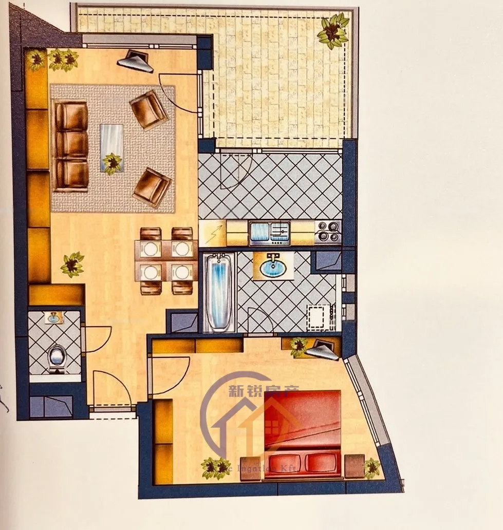 户型:开放式厨房客厅 + 1间卧室,布局合理,动静分区明确。