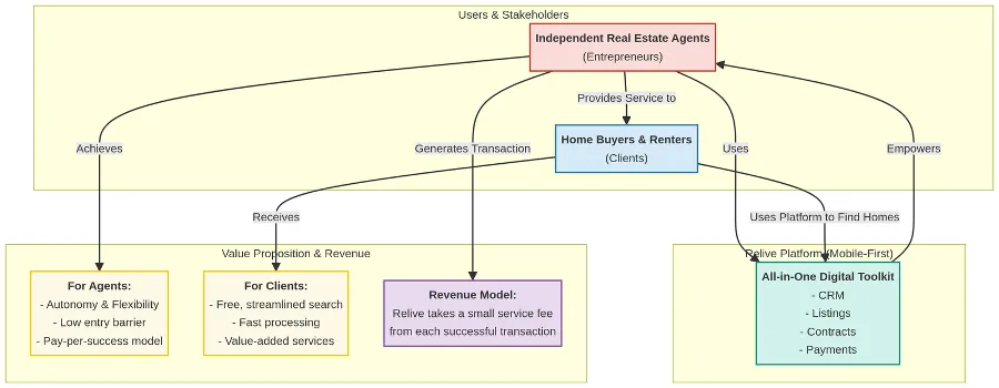 传统的房地产经纪行业,经纪人往往受雇于大型经纪公司,不仅需要上缴高额的佣金分成,其工作方式和工具也常常受到公司的限制。随着零工经济和个人品牌时代的到来,越来越多的经纪人渴望摆脱束缚,成为独立的“超级个体”,建立自己的个人事业。正是洞察到这一深刻的行业变革趋势,来自葡萄牙的初创公司Relive,决心为这些心怀创业梦想的房地产经纪人打造一个强大的赋能平台。2025年2月,该公司宣布获得了由Indico Capital Partners领投的550万美元A轮融资,这笔资金将主要用于加速其在美国市场的扩张。Relive的核心理念,是为房地产经纪人提供一个“all-in-one”的移动数字化平台,让他们可以“为自己工作,而非独自工作”(Work for yourself, not by yourself)。这个平台集成了客户关系管理(CRM)、房源发布、合同签署、佣金结算等所有核心功能,让经纪人可以通过一部手机,随时随地管理自己的全部业务。商业模式:重塑经纪人与平台的关系