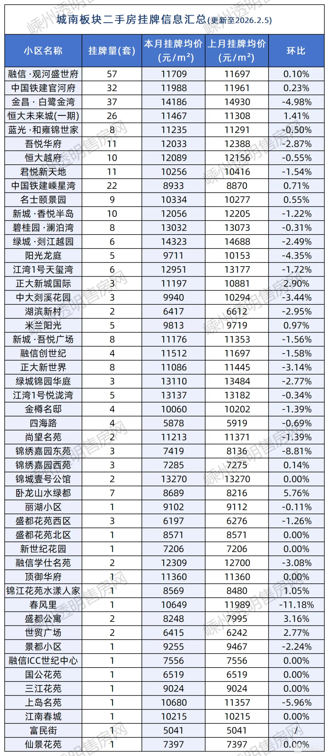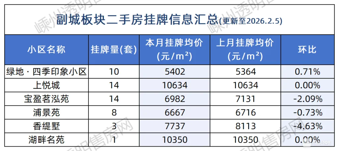 其次是副城板块,主要集中在绿地·四季印象小区、上悦城等。