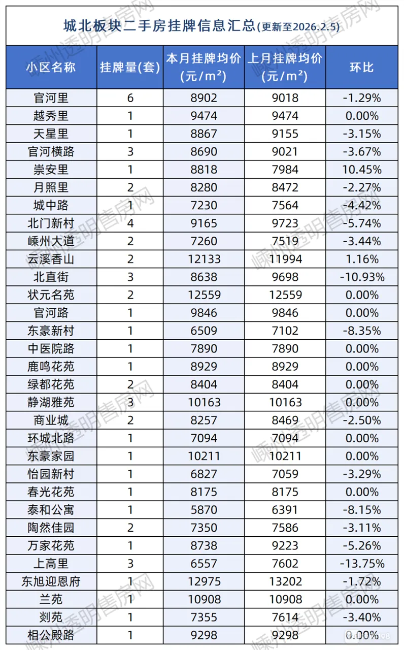 根据贝壳找房显示,嵊州二手房现总挂牌量为869套,小编汇总了当前各板块主要小区的挂牌量与挂牌均价,可供参考。