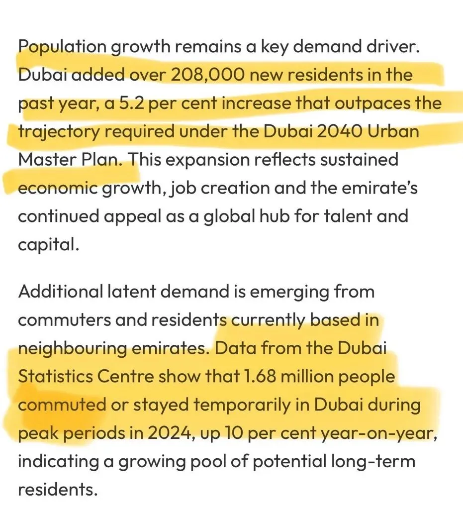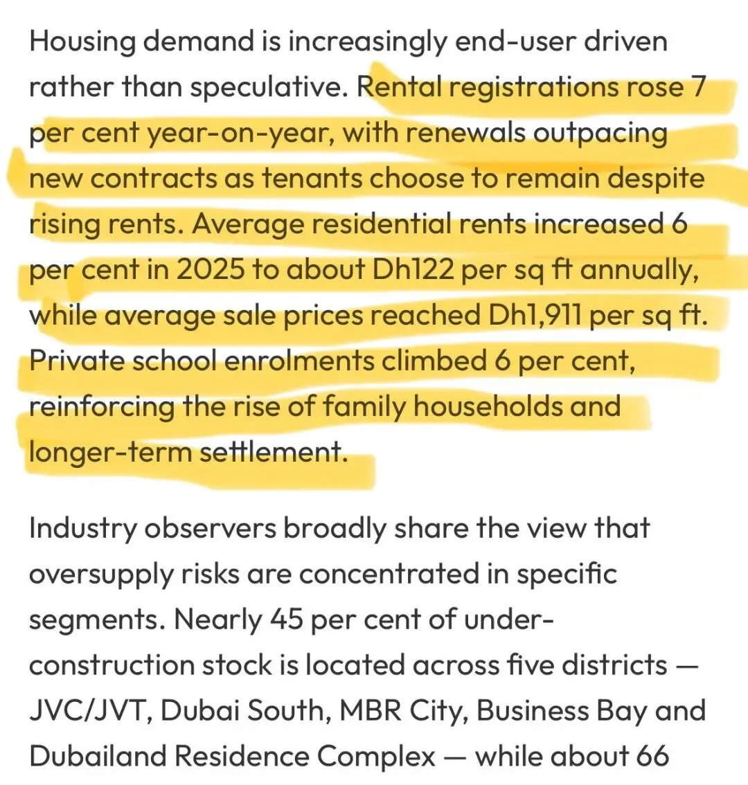 由于人口大量增长和大量人口目前因为迪拜房租贵而往返通勤于迪拜,人们对住房需求量仍然很高,2026年迪拜房产数量并不会供过于求。