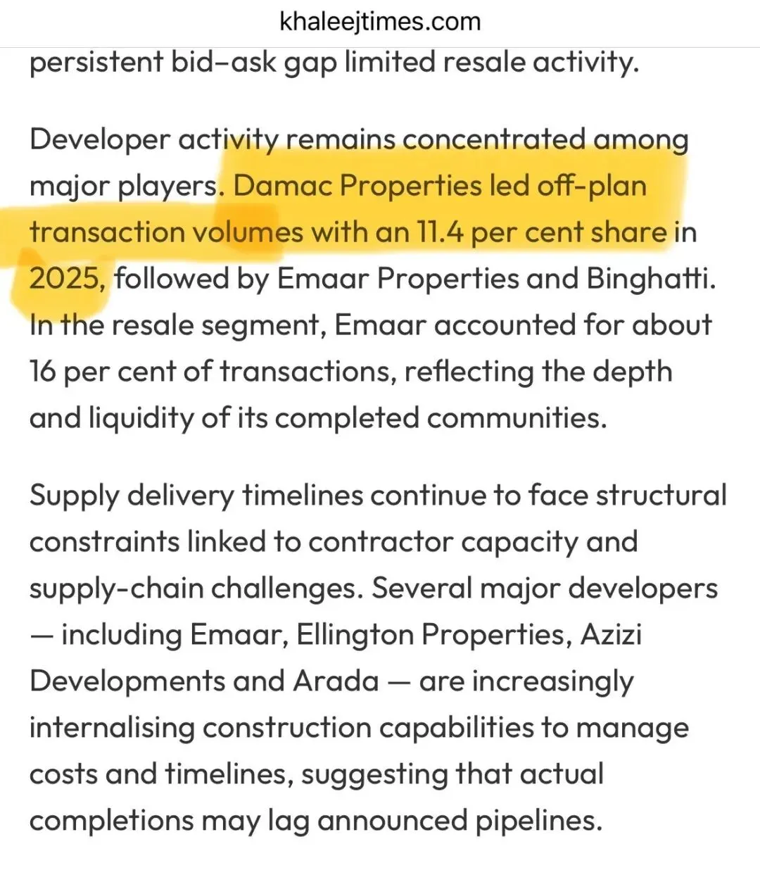 2025年,Damac开发商在期房成交数量最高,市场占比11.4%
