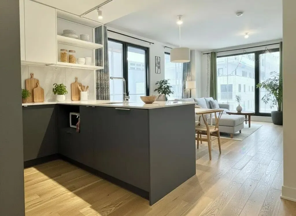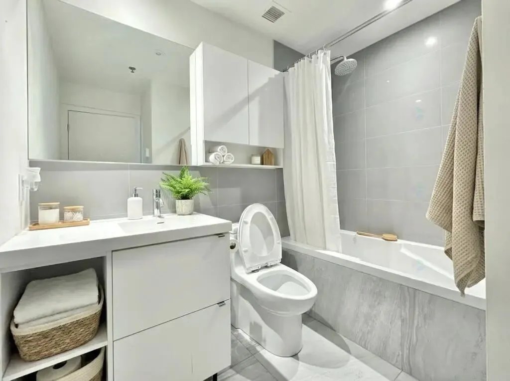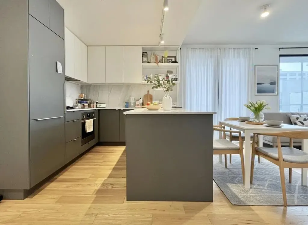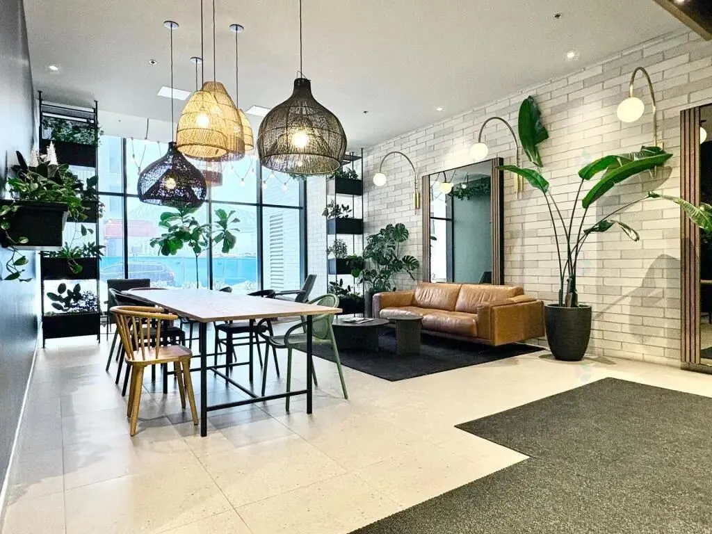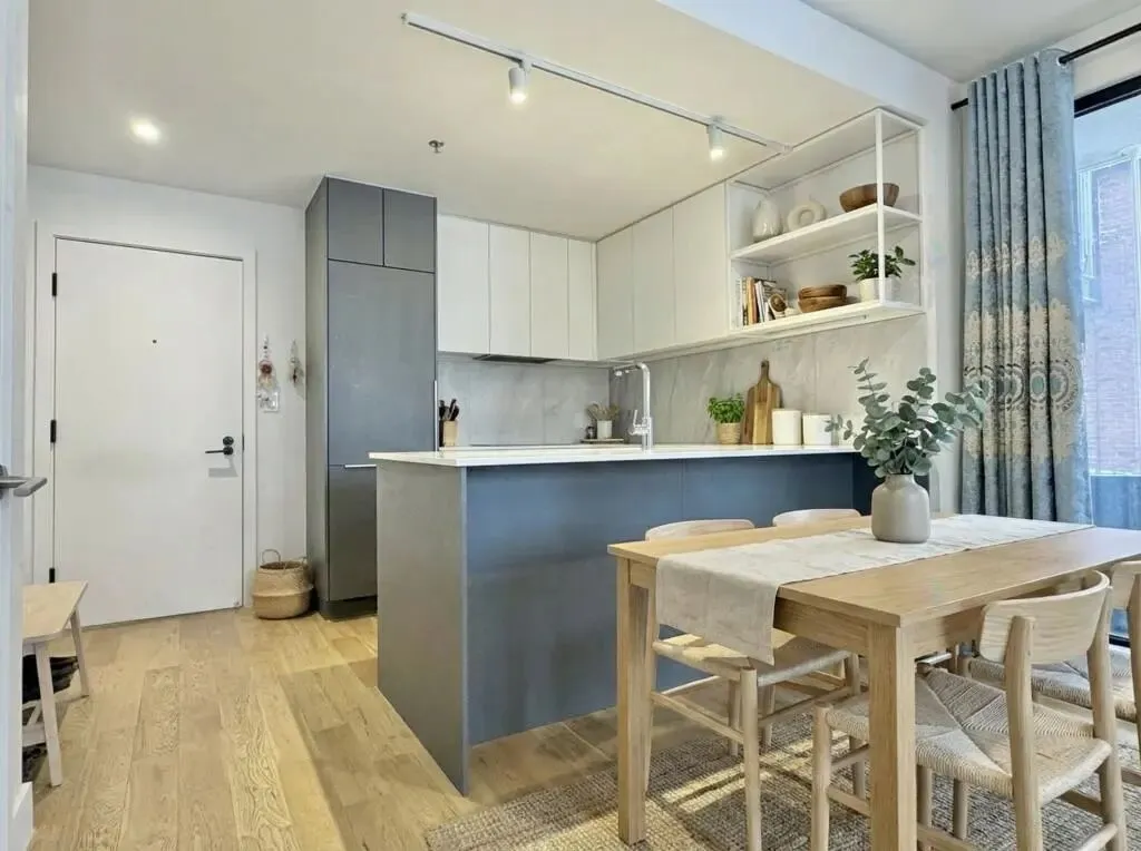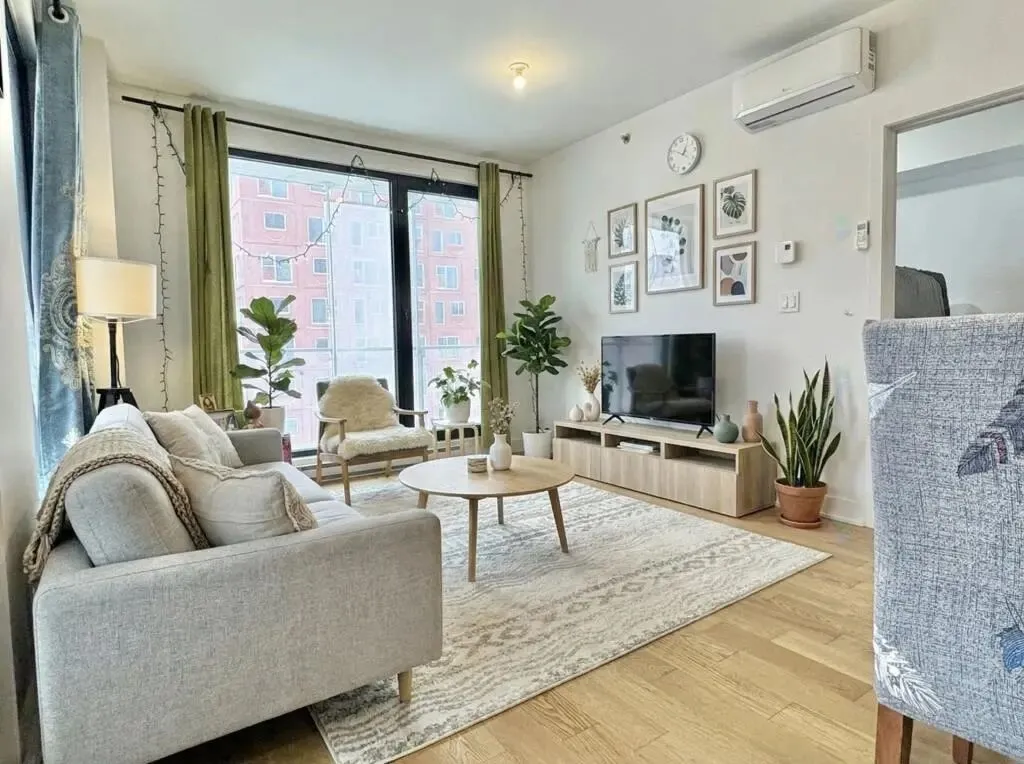 房源亮点:这间一居室转角单元采光极佳,两侧设计超大窗户,全天引入充沛自然光线。室内装修注重细节,开放式布局连通客厅与厨房,配以落地窗进一步拓展视野与明亮感。厨房配备意大利橱柜、石英台面及高端电器,兼具美观与实用。