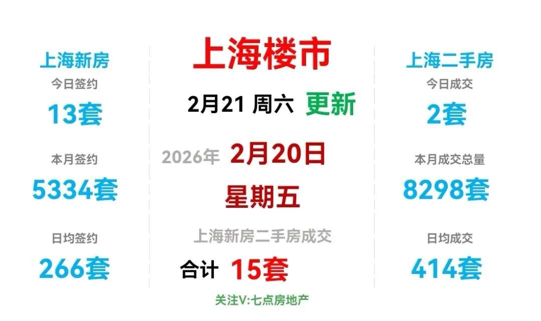 昨日(2月20日,周五),上海新房和上海二手房成交量合计15套。