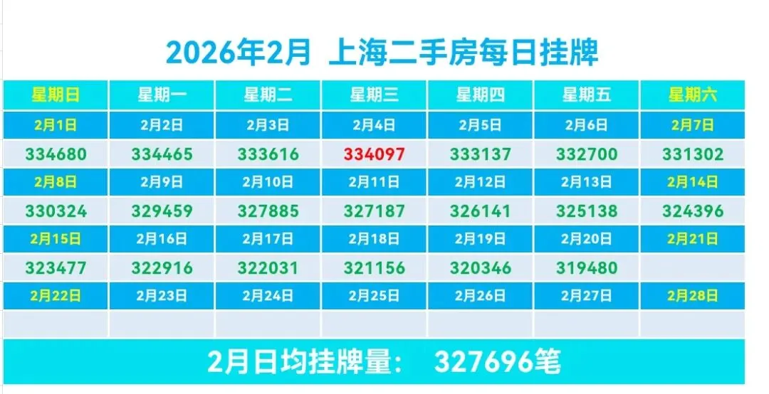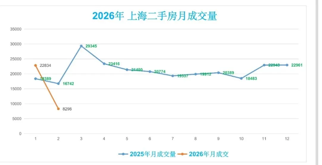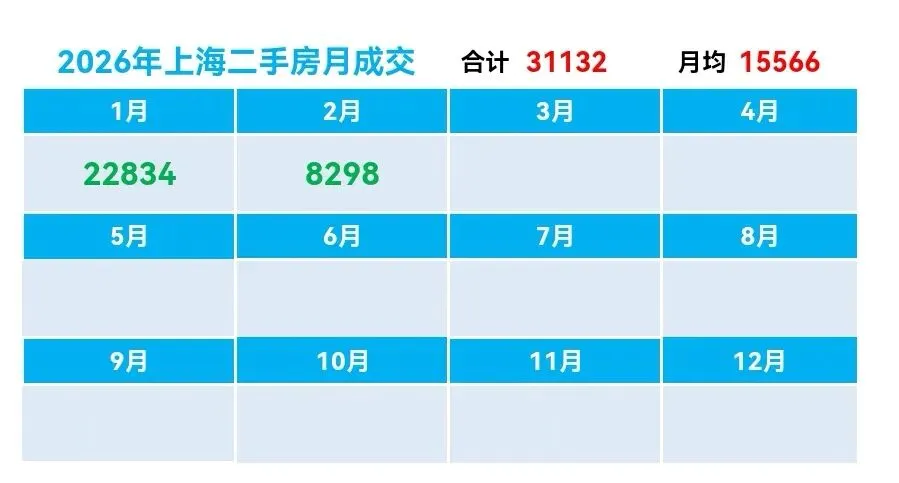 ♻️截止2026年2月20日,2025年上海二手房成交量合计254091套,月均21174套。