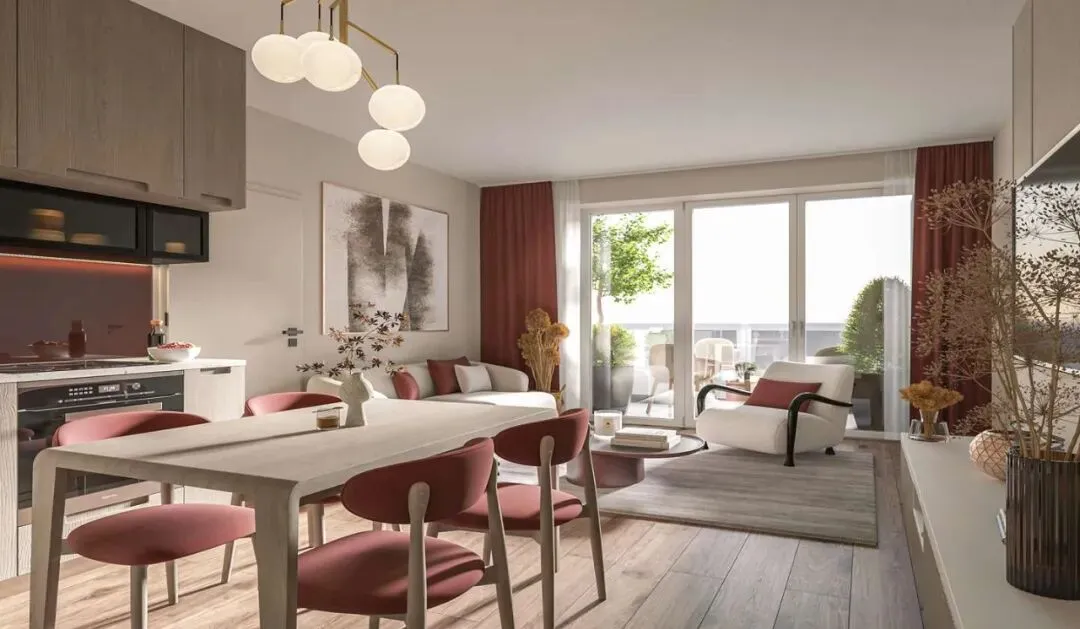 底层住宅配有 私家庭院🌿,中央景观花园🌳犹如城市中心的绿色绿洲。科技为舒适生活保驾护航⚡:天花板冷暖系统❄️🔥、三层玻璃门窗🪟、智能家居接口📱,以及精挑细选的室内装饰材料,共同打造理想居住体验✨。