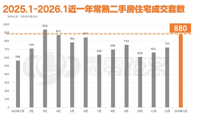 1月份常熟二手房住宅成交880套