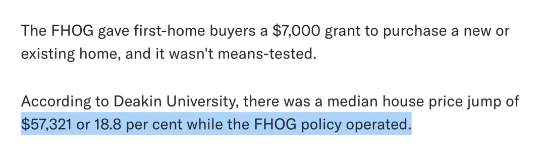 还记得开头那个数字吗?205亿,涨了18.8%。这不是我编的。Deakin大学(迪肯大学)做过一个研究——首购补贴(First Home Buyer Grant)直接把中位房价推高了大约5万7千块。AHURI的数据更吓人——2010到2021年,纳税人一共掏了超过205亿去补贴首购者。