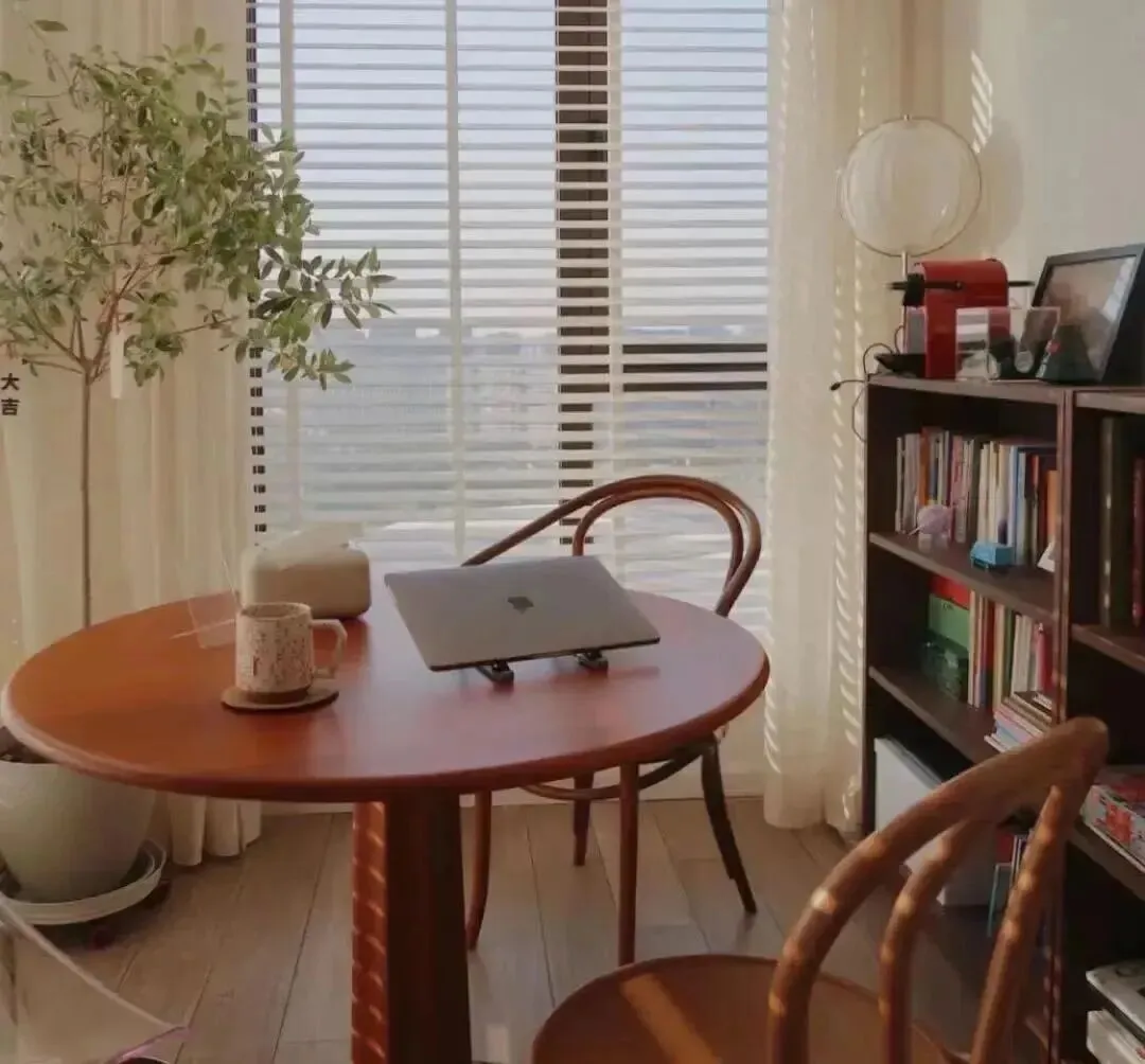 圆桌不占尖角,走动不磕腿,家里来人也更松弛。