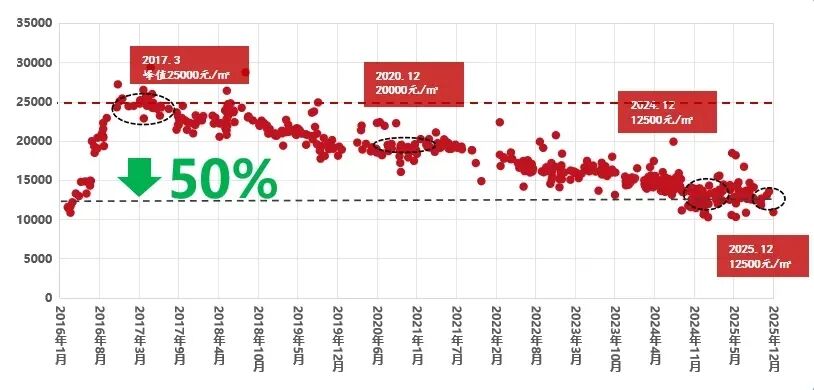 1.25万/平米左右,与2024年底持平。