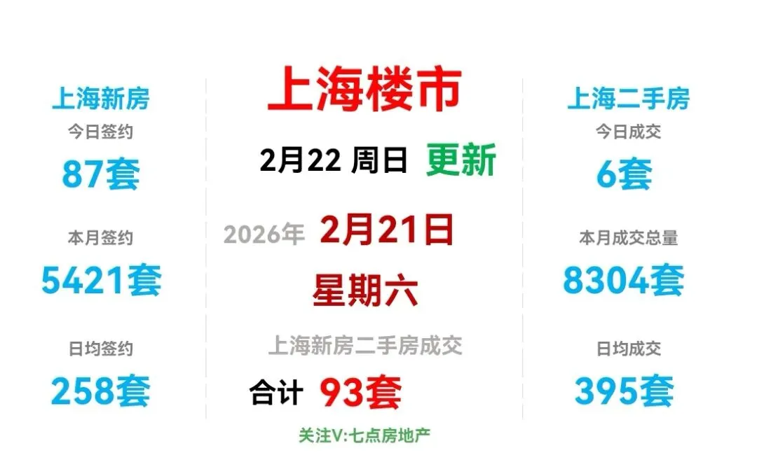 昨日(2月21日,周六),上海新房和上海二手房成交量合计93套。