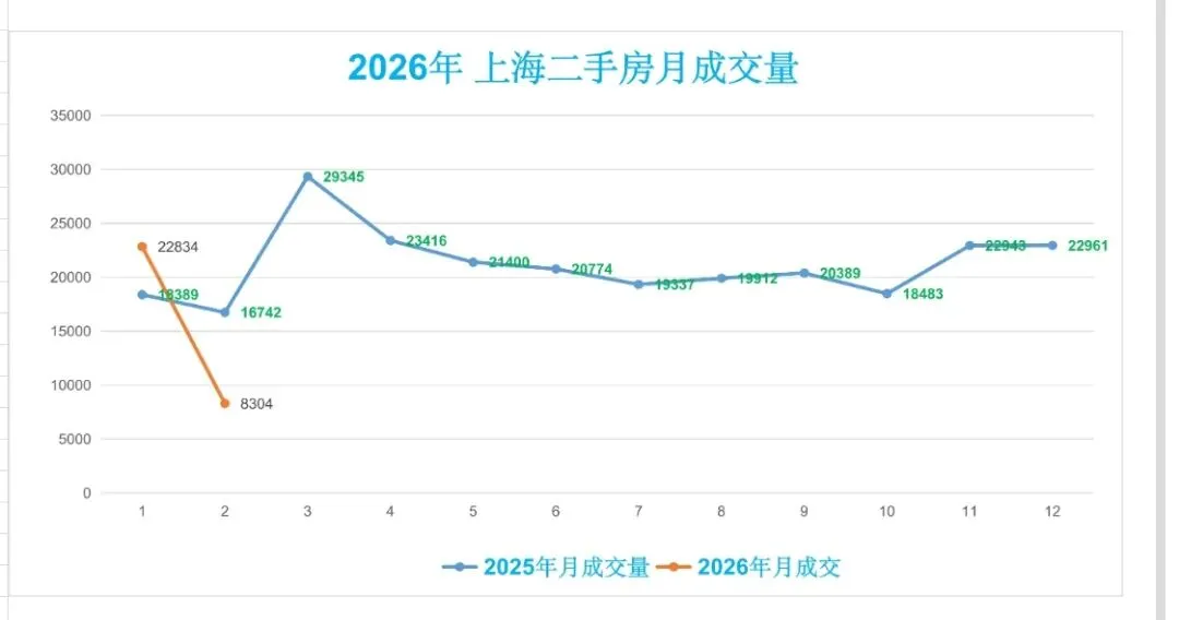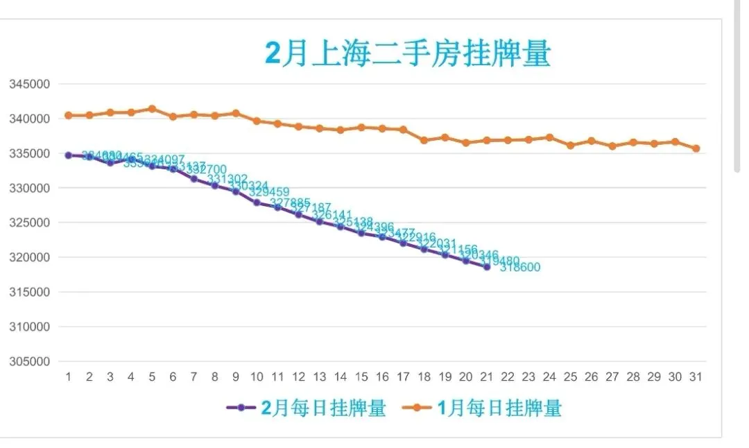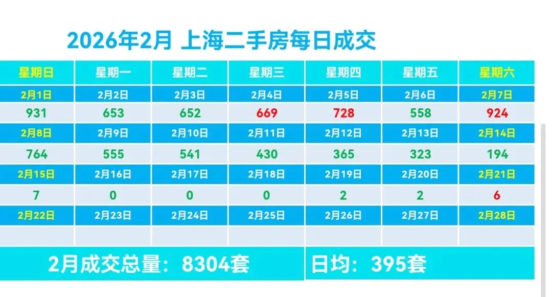 🏡2月,上海二手房成交量累计8304套,日均成交395套,较上个月日均减少341套(降幅46.33%)。