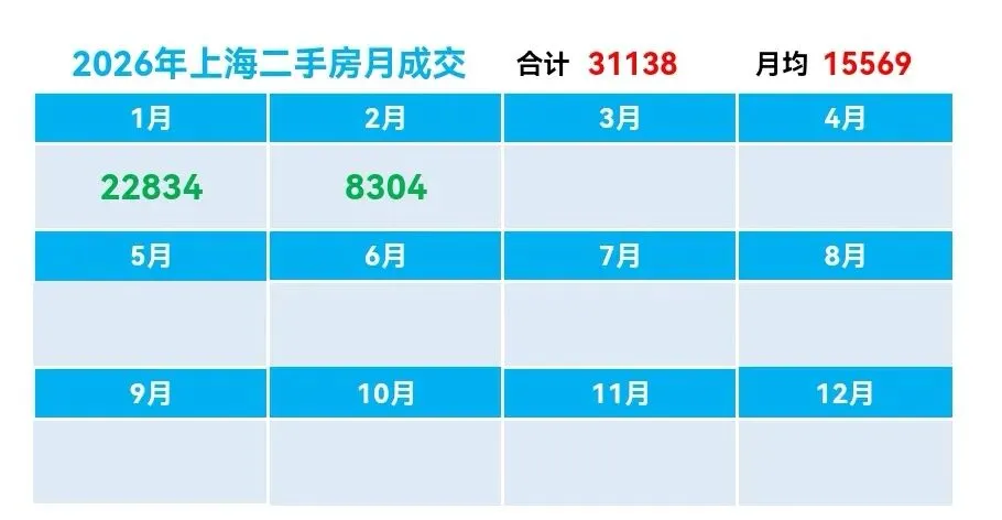 ♻️截止2026年2月21日,2025年上海二手房成交量合计254091套,月均21174套。