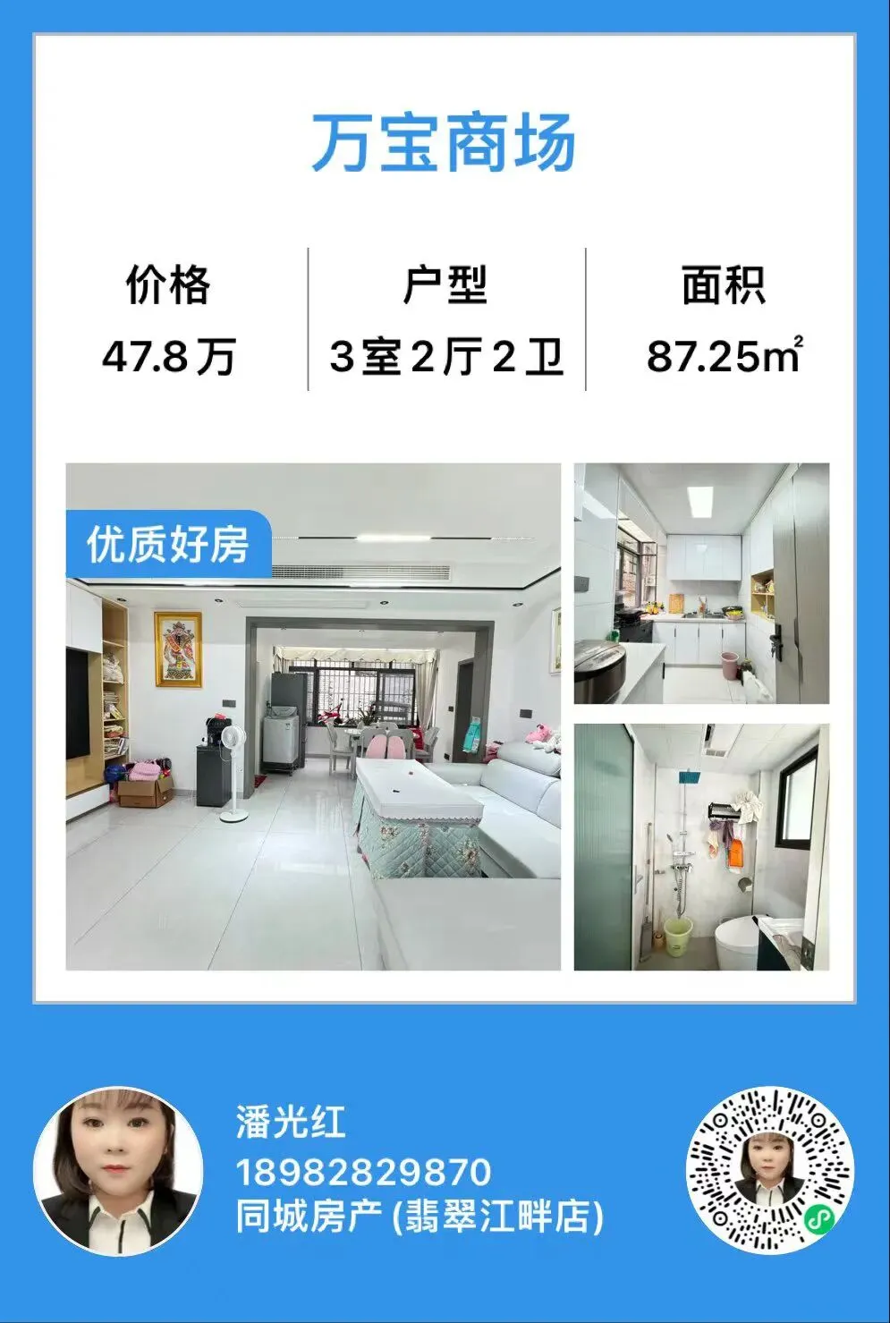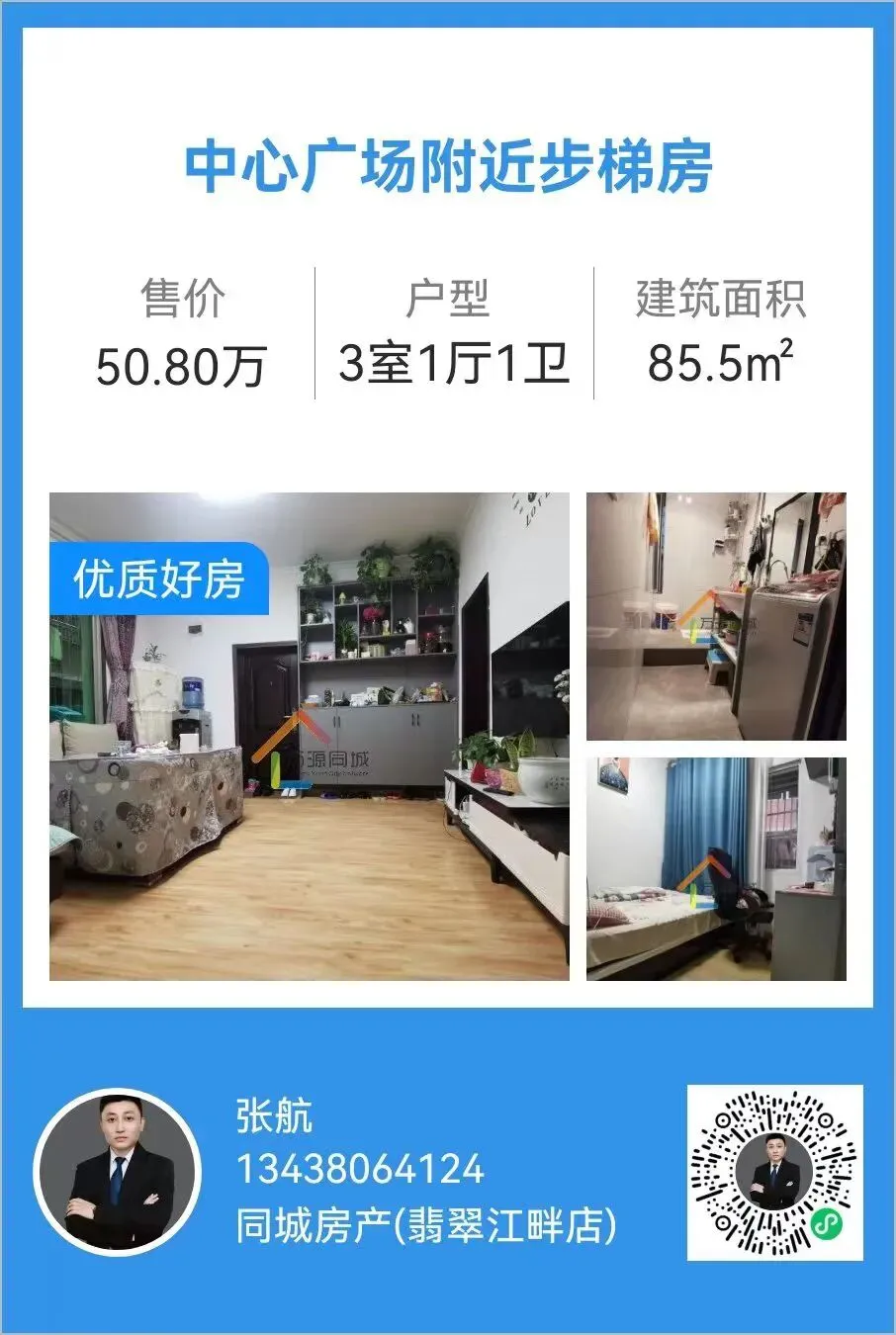 >【万源房产】中心广场步梯3房,面积85.5m²,家具家电齐全,总价50.8万