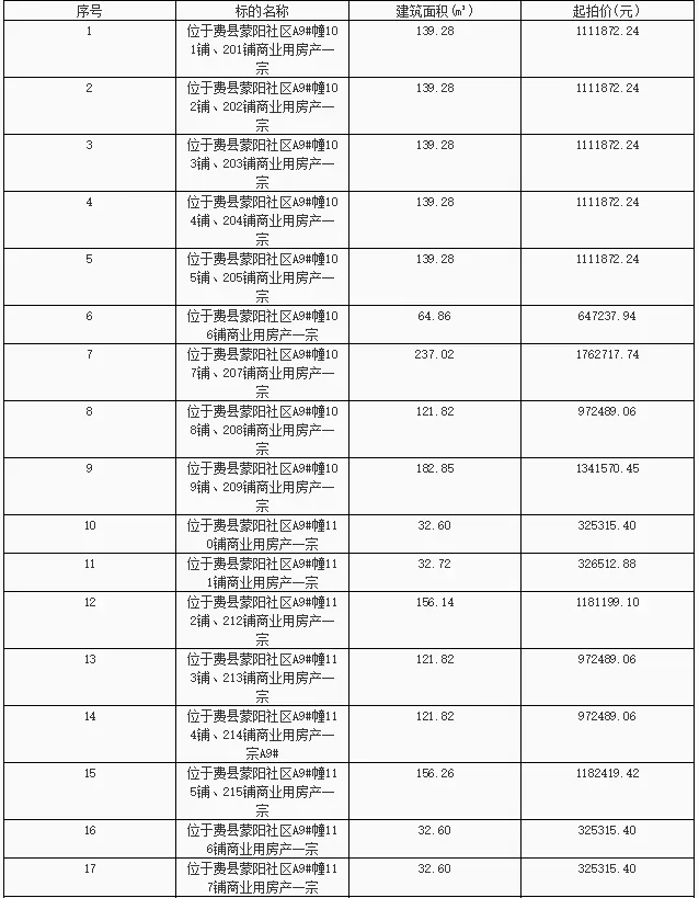 费县蒙阳社区A区、B区、D区商业房产拍卖公告