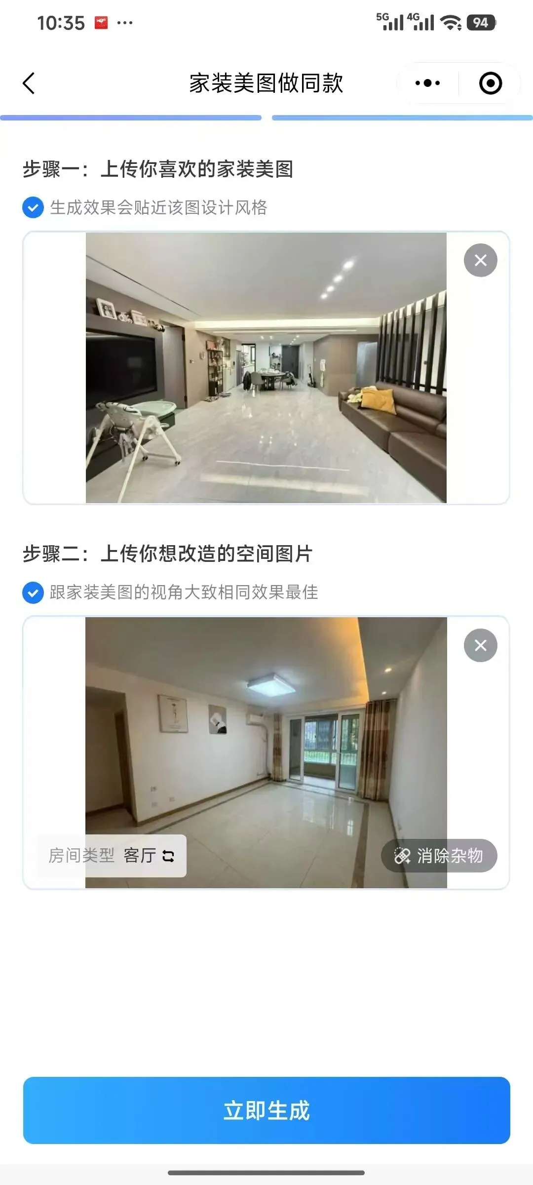 但是在我试到小程序的时候,我发现酷家乐虽然在电脑端比较难用,但酷家乐AI在微信小程序端还是比较好用的。