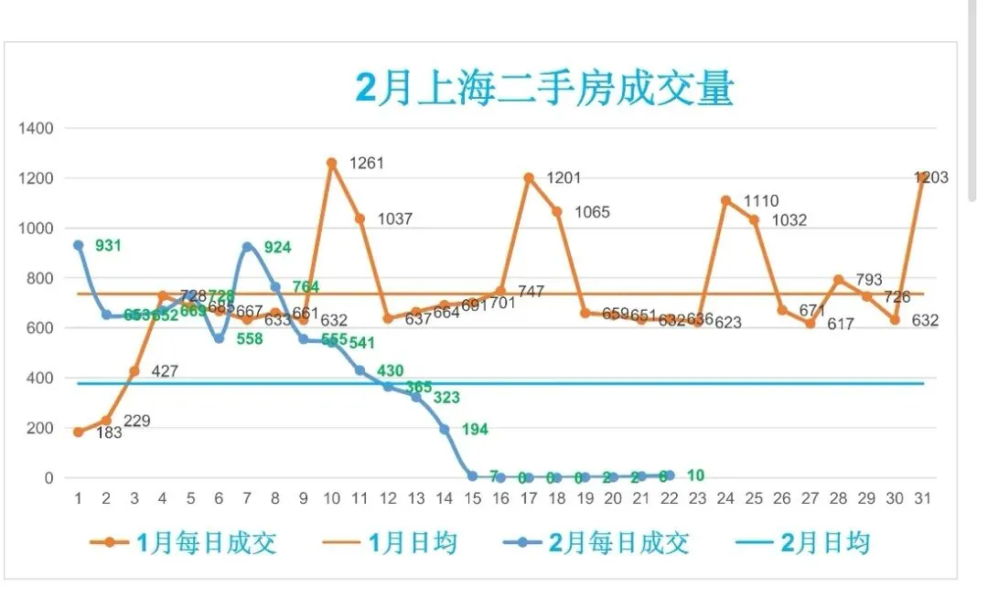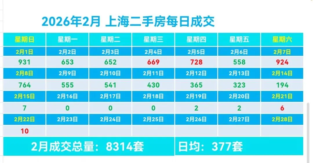 🏡2月,上海二手房成交量累计8314套,日均成交377套,较上个月日均减少359套(降幅48.78%)。