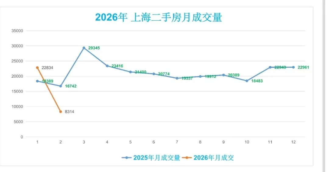 ♻️截止2026年2月22日,2025年上海二手房成交量合计254091套,月均21174套。