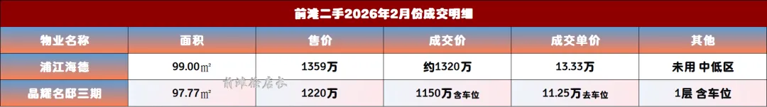 >前滩『二手房周报•26年2月23日』挂牌/已售/数据库•每周五更新