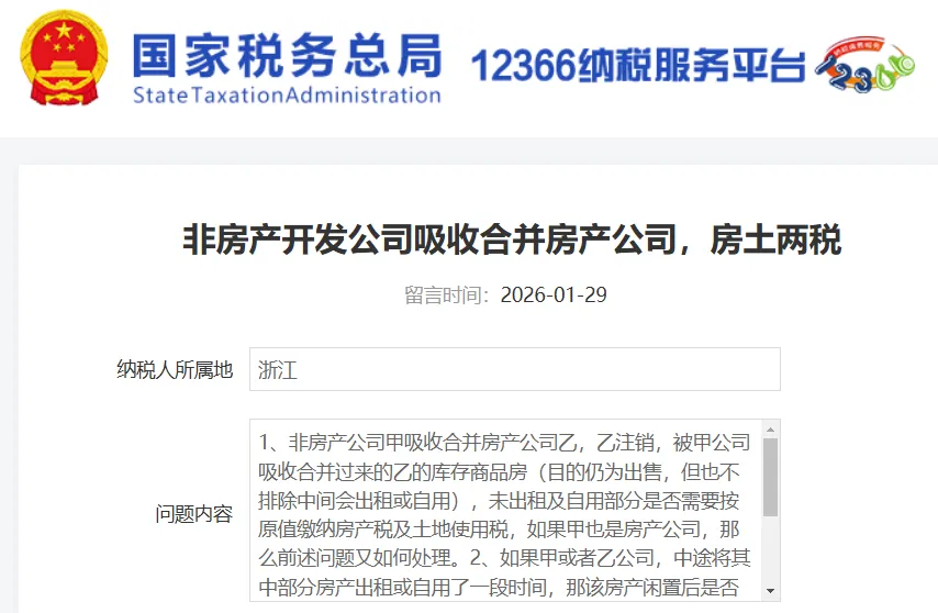 浙江12366中心2026-02-03答复: