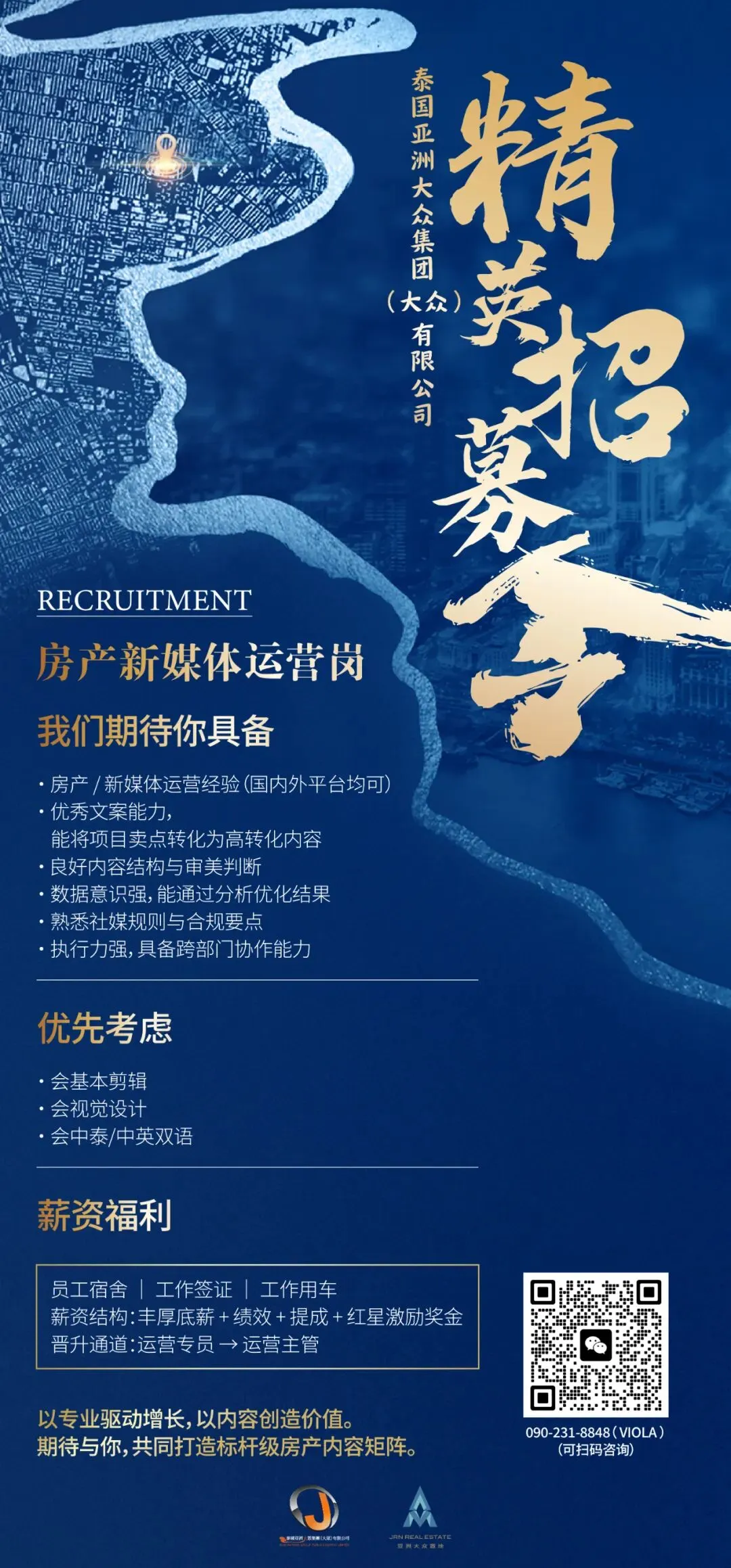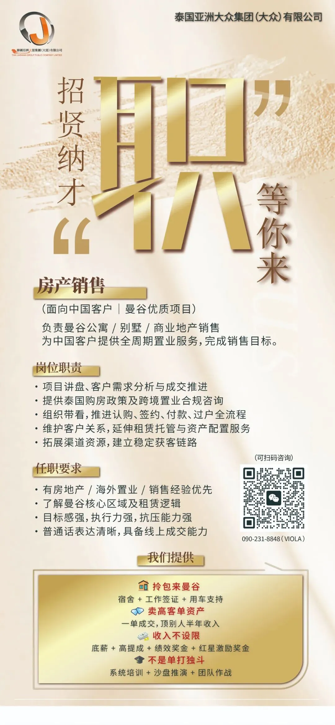 在这里,你将站在曼谷核心资产与中国客户市场的交汇点参与高价值项目,获得清晰成长路径,与一群专业、高效、结果导向的团队并肩作战。