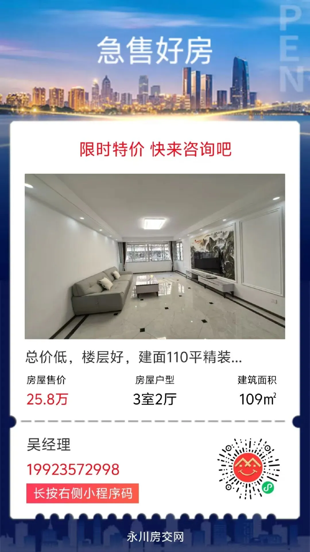 【二手房】永川优质精装房源推荐,价格便宜面积大,总价16.8万起