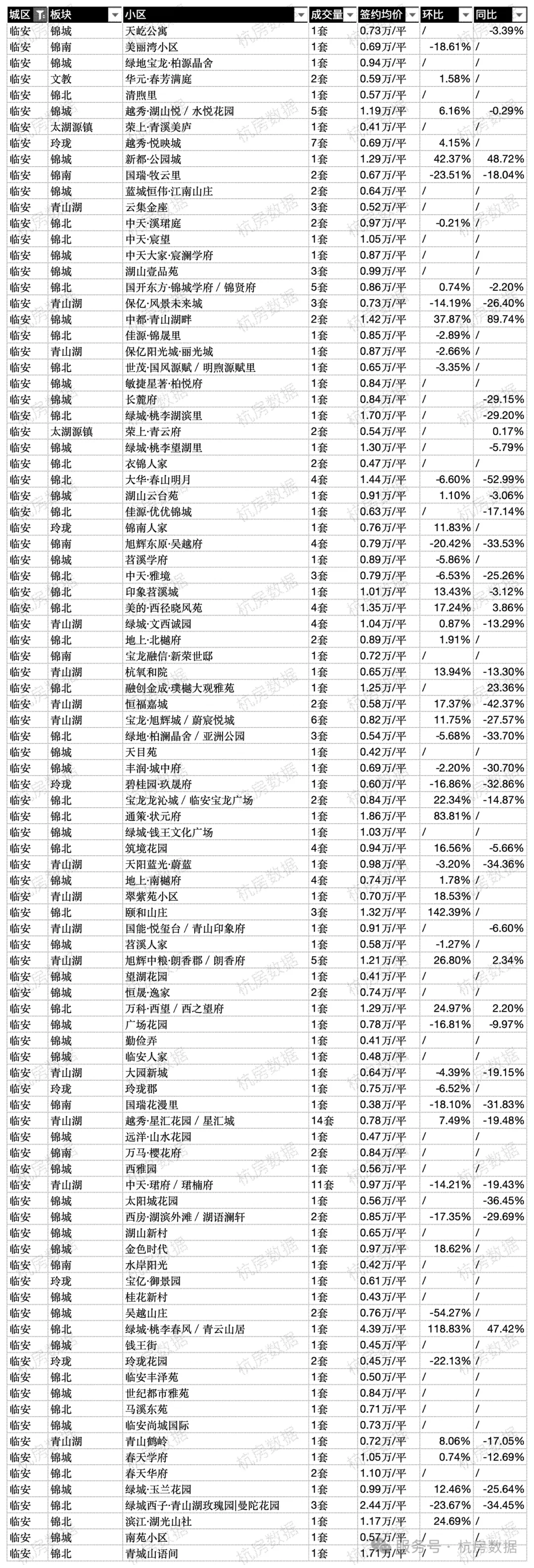 临安区弱成交小区汇总