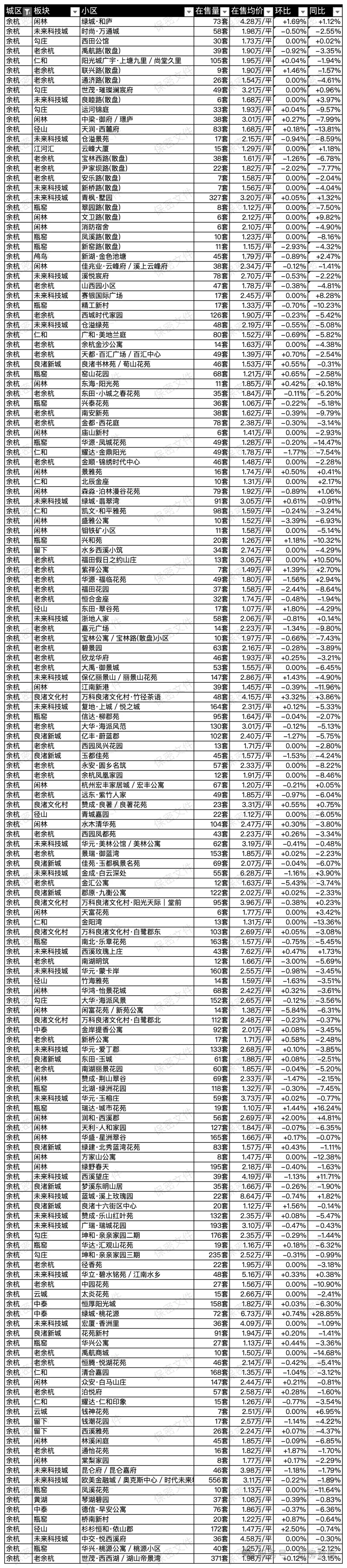 余杭区弱成交小区汇总