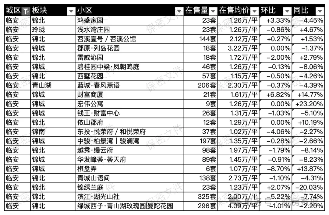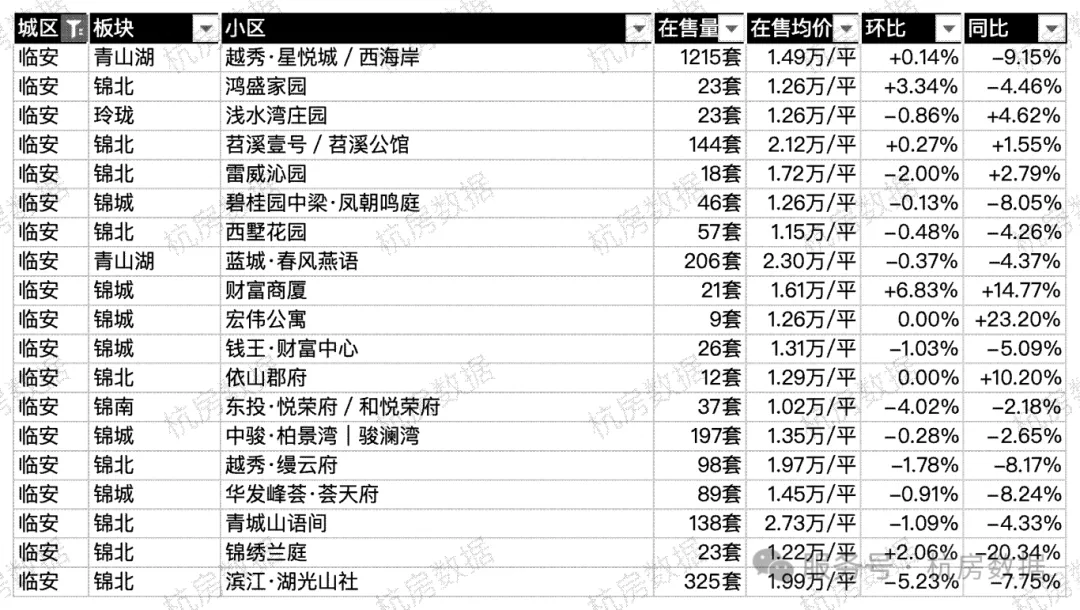 临安区各小区在售数据